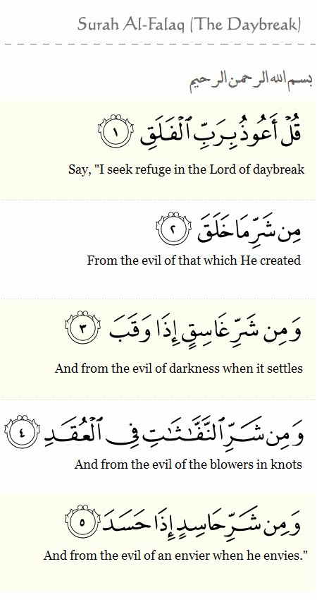 113.“Qul A’ouzu brabbil falaq” (Surah Al-Falaq)